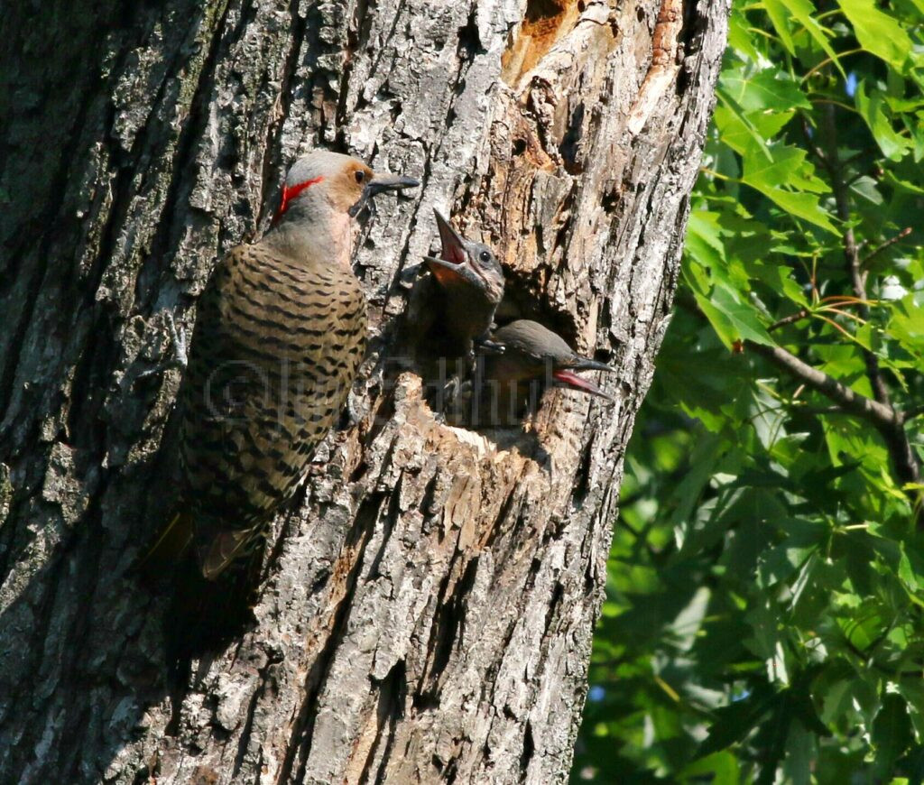 Northern Flickers feeding nestlings in a natural nest cavity in Waukesha Co 7-5-2025