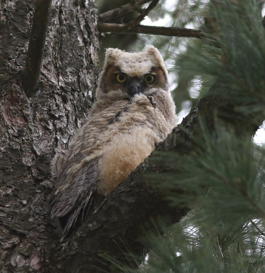 Great Horned Owl, owlet in Milwaukee Co 4-28-2025